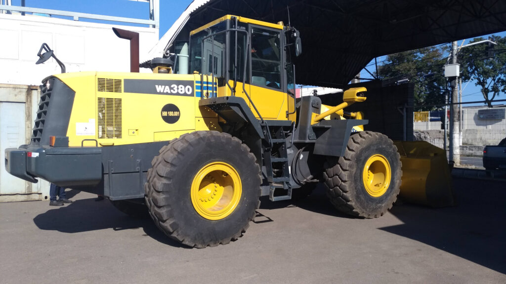 A WA380 é uma Pá Carregadeira de médio porte amplamente utilizada em construção, mineração e aplicações industriais, conhecida pelo equilíbrio entre força de escavação e eficiência de combustível.